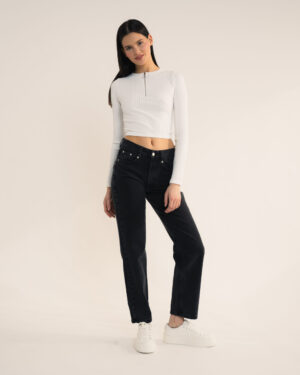 499,00 złPierwotna cena wynosiła: 499,00 zł.349,00 złAktualna cena wynosi: 349,00 zł.Kultowe mom jeans z wysokim stanem i luźną nogawką w kolorze spranej czerni.
